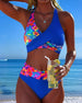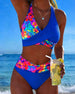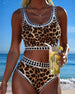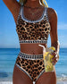 Textured Leopard Print Patchwork Halterneck Bikini