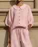 SPECIFICATIONS Top Type: Blouses Style: Casual Material: Cotton Blends Occasion: Daily Neckline: Peter Pan Collar Pattern Type: Solid Color Sleeve Type: Regular sleeve Sleeve Length: Short Sleeve Fit Type: Regular Season: Spring,Summer Details: Buttons,Hollow Out Package Includes: 1 x Blouse SIZE TABLE Size Bust Length CM INCH CM I...