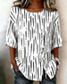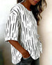 Striped Button Three-Quarter Sleeve Top