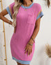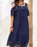 Lantern Sleeve Solid Color Patchwork Dress