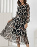 SPECIFICATIONS Style: Casual Material: Chiffon Dress Type: Shift dress Dress Length: Midi Neckline: Round Neck Pattern Type: Geometric Print Sleeve Type: Regular sleeve Sleeve Length: Long Sleeve Details: Lace Up,Shirred Fit Type: Regular Season: Spring,Fall Occasion: Daily,Vacation Package Includes: 1 x Dress SIZE TABLE Size Bust Le...