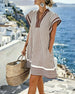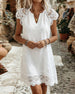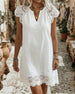 SPECIFICATIONS Style: Casual Material: Cotton Blends Dress Type: A-Line Dress Length: Above-knee Neckline: V neck_V Pattern Type: Solid Color Sleeve Length: Half Sleeve Details: Patchwork,Lace Fit Type: Regular Season: Spring,Summer Occasion: Daily Package Includes: 1 x Dress SIZE TABLE Size Bust Length CM INCH CM INCH S 92 36.22 ...