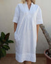 V-Neck Pleated Cotton And Linen Dress