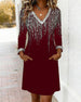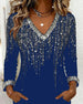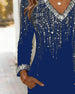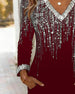 Shimmering V-Neck Long-Sleeved Dress