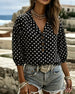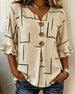 SPECIFICATIONS Top Type: Shirt Style: Casual Material: Cotton Blends Occasion: Daily Neckline: V neck_V Pattern Type: Print Sleeve Type: Regular sleeve Sleeve Length: 3/4 Sleeve Fit Type: Regular Season: Spring,Summer Package Includes: 1 x Shirt SIZE TABLE Size Bust Length CM INCH CM INCH S 97 38.19 65 25.59 M 101 39.76 66.5 2...