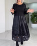 SPECIFICATIONS Style: Casual Material: Cotton Blends Dress Type: Shift dress Dress Length: Midi Neckline: Round Neck Pattern Type: Solid Color Sleeve Type: Regular sleeve Sleeve Length: 3/4 Sleeve Details: Hollow Out Fit Type: Regular Season: Spring,Summer,Fall,Winter Occasion: Daily Package Includes: 1 x Dress SIZE TABLE Size Bust Le...