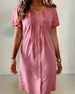 SPECIFICATIONS Style: Chic Material: Cotton Blends Dress Type: Shift dress Dress Length: Above-knee Neckline: Round Neck Pattern Type: Solid Color Sleeve Type: Regular sleeve Sleeve Length: Short Sleeve Details: Buttons Fit Type: Regular Season: Spring,Summer Occasion: Daily Package Includes: 1 x Dress SIZE TABLE Size Bust Length CM INC...