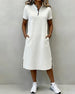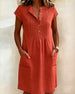 SPECIFICATIONS Style: Casual Material: Cotton Blends Dress Type: Shift dress Dress Length: Midi Neckline: Stand Collar Pattern Type: Solid Color Sleeve Type: Regular sleeve Sleeve Length: Short Sleeve Details: Buttons Fit Type: Regular Season: Spring,Summer Occasion: Daily Package Includes: 1 x Dress SIZE TABLE Size Bust Length CM ...