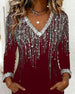 V-neck long-sleeved sequined jumpsuit