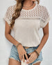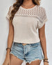 SPECIFICATIONS Top Type: T-shirt Style: Casual Material: Cotton Blends Occasion: Daily Neckline: Round Neck Pattern Type: Solid Color Sleeve Type: Raglan sleeve Sleeve Length: Short Sleeve Fit Type: Regular Season: Spring,Summer Details: Hollow Out Package Includes: 1 x T-shirt SIZE TABLE Size Bust Length CM INCH CM INCH S 90 35....