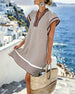 V-Neck Solid Color Waist Dress