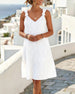 SPECIFICATIONS Style: Casual Material: Cotton Blends Dress Type: A-Line Dress Length: Knee Length Neckline: V neck_V Pattern Type: Solid Color Sleeve Length: Sleeveless Fit Type: Regular Season: Spring,Summer Occasion: Daily Package Includes: 1 x Dress SIZE TABLE Size Bust Length CM INCH CM INCH S 92 36.22 100 39.37 M 96 37.80 101.5...