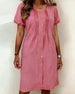 Buttoned Pleated Puff Sleeve Dress