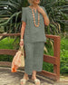 Oblique Placket Decorative Button Sleeveless Dress