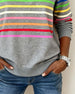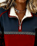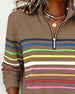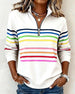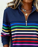 Half-Zip Collar Fashionable Rainbow Striped Sweatshirt