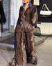 Stylish Leopard Print Wide-Leg Pants Set