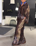 SPECIFICATIONS Style: Chic Top Type: Tops Category: Sets Material: Cotton Blends Pattern Type: Leopard Neckline: Shirt Collar Sleeve Type: Regular sleeve Sleeve Length: Long Sleeve Pants Type: Wide Leg Fit Type: Regular Season: Spring,Fall Details: Buttons Occasion: Daily Package Includes: 1 x Top, 1 x Pants SIZE TABLE Size Bust Top Lengt...