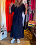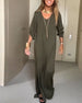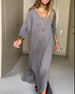 SPECIFICATIONS Style: Casual Material: Cotton Blends Dress Type: Shift dress Dress Length: Maxi Neckline: V neck_V Pattern Type: Solid Color Sleeve Type: Regular sleeve Sleeve Length: Half Sleeve Details: Pocket, Slit, Shirred Fit Type: Regular Season: Spring, Fall, Winter Occasion: Daily Package Includes: 1 x Dress SIZE TABLE ...
