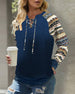 SPECIFICATIONS Top Type: Sweatshirts Style: Casual Material: 6% Spandex,94% Polyester Occasion: Daily, Street Neckline: V neck_V Pattern Type: Color Block Sleeve Type: Regular sleeve Sleeve Length: Long Sleeve Fit Type: Regular Season: Spring, Fall, Winter Details: Bandage Package Includes: 1 x Sweatshirt SIZE TABLE Size Bus...