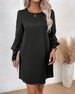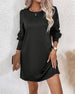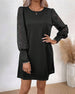 SPECIFICATIONS Style: Elegant Material: Cotton Blends Dress Type: Shift dress Dress Length: Knee Length Neckline: Round Neck Pattern Type: Solid Color Sleeve Type: Raglan sleeve Sleeve Length: Long Sleeve Details: Lace Fit Type: Regular Season: Fall, Winter Occasion: Daily, Vacation Package Includes: 1 x Dress SIZE TABLE Size Bust Length ...