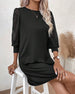 SPECIFICATIONS Style: Casual Material: 94% Polyester, 6% Spandex Dress Type: A-Line Dress Length: Knee Length Neckline: Round Neck Pattern Type: Solid Color Sleeve Type: Regular sleeve Sleeve Length: Long Sleeve Details: Shirred Fit Type: Regular Season: Fall, Winter Occasion: Daily, Vacation Package Includes: 1 x Dress SIZE TABLE Size B...