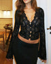 SPECIFICATIONS Top Type: Tops Style: Sexy Material: Polyester Occasion: Night Out Neckline: V neck_V Pattern Type: Solid Color Sleeve Type: Flare Sleeve Sleeve Length: Long Sleeve Fit Type: Regular Season: Spring,Fall Details: Lace Package Includes: 1 x Top SIZE TABLE Size Bust Waist Length Sleeve Length CM INCH CM INCH CM INCH CM...