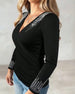 SPECIFICATIONS Top Type: Blouses Style: Chic Material: Cotton Blends Occasion: Daily Neckline: V neck_V Pattern Type: Solid Color Sleeve Type: Regular sleeve Sleeve Length: Long Sleeve Fit Type: Regular Season: Spring,Fall Details: Hot Drilling Package Includes: 1 x Blouse SIZE TABLE Size Bust Length CM INCH CM INCH S 92 36.22 65 25.5...