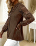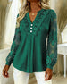 Lace Paneled Long-Sleeved V-Neck Blouse