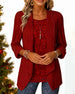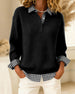 SPECIFICATIONS Top Type: Tops Style: Casual Material: Cotton Blends Occasion: Daily Pattern Type: Solid Color Sleeve Type: Regular sleeve Sleeve Length: Long Sleeve Fit Type: Regular Season: Fall,Winter Details: Fake two pieces Package Includes: 1 x Top SIZE TABLE Size Bust Length CM INCH CM INCH S 92 36.22 65 25.59 M 96 37.8 66.5 2...