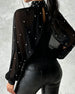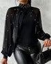 SPECIFICATIONS Top Type: Blouses Style: Elegant Material: Cotton Blends Occasion: Daily Neckline: Stand Collar Sleeve Type: Lantern Sleeve Sleeve Length: Long Sleeve Fit Type: Regular Season: Spring,Fall,Winter Details: Pearl Package Includes: 1 x Blouse SIZE TABLE Size Bust Length CM INCH CM INCH S 95 37.40 65 25.59 M 100 39.37 ...