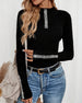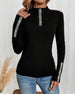 SPECIFICATIONS Top Type: Tops Style: Casual Material: Acrylic,Spandex,Polyester Occasion: Daily Neckline: Stand Collar Pattern Type: Solid Color Sleeve Type: Regular sleeve Sleeve Length: Long Sleeve Fit Type: Regular Season: Spring,Fall,Winter Details: Hot Drilling Package Includes: 1 x Top SIZE TABLE Size Bust Length CM INCH CM I...