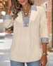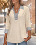 SPECIFICATIONS Top Type: Tops Style: Casual Material: Cotton Blends Occasion: Daily Neckline: Lapel Pattern Type: Color Block Sleeve Type: Regular sleeve Sleeve Length: 3/4 Sleeve Fit Type: Regular Season: Spring,Fall Package Includes: 1 x Top SIZE TABLE Size Bust Length CM INCH CM INCH S 92 36.22 68 26.77 M 96 37.8 69.5 27.36 L 100...