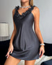 Lace V Neck Bowknot Decor Sleeveless Babydolls Sexy See Through Teddy Sleepwear