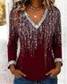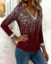 SPECIFICATIONS Top Type: Shirt Style: Casual Material: Cotton Blends,Sequins Occasion: Daily Neckline: V neck_V Pattern Type: Sequin,Solid Color Sleeve Type: Regular sleeve Sleeve Length: Long Sleeve Fit Type: Regular Season: Fall Details: Patchwork,Buckle Package Includes: 1 x Shirt SIZE TABLE Size Bust Length CM INCH CM INCH S ...