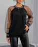 SPECIFICATIONS Top Type: Blouses Style: Chic Material: Cotton Blends,Mesh Occasion: Daily Neckline: Round Neck Pattern Type: Sequin,Solid Color Sleeve Type: Regular sleeve Sleeve Length: Long Sleeve Fit Type: Regular Season: Fall,Winter Details: See-through,Hot Drilling Package Includes: 1 x Blouse SIZE TABLE Size Bust Length CM I...