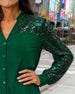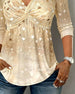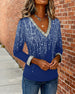 Elegant V-Neck Lace Long-Sleeved T-Shirt