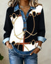 SPECIFICATIONS Top Type: Sweatshirts Style: Chic Material: Cotton Blends,Denim Occasion: Daily,Street Neckline: Shirt Collar Pattern Type: Color Block,Print Sleeve Type: Regular sleeve Sleeve Length: Long Sleeve Fit Type: Regular Season: Fall,Winter Details: Patchwork,Buckle,Chains Package Includes: 1 x Sweatshirt SIZE TABLE Size Bu...