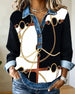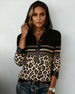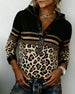Color-Blocked Leopard Print Long-Sleeved Shirt