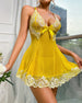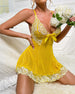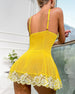 SPECIFICATIONS Style: Sexy Material: Lace,Mesh Dress Type: A-Line Dress Length: Above-knee Neckline: Spaghetti Straps Sleeve Length: Sleeveless Details: Patchwork Fit Type: Skinny Season: Spring,Summer,Fall,Winter Occasion: Daily Package Includes: 1 x Panties,1 x Dress SIZE TABLE Size Bust Waist CM INCH CM INCH S 88 34.65 92 36.22 ...