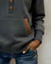 Color-Blocked Button-Down Collar Stylish Hooded Sweatshirt