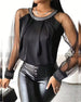 Hot Rhinestone Mesh Long-Sleeved Fashionable Blouse