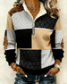 SPECIFICATIONS Top Type: Sweatshirts Style: Chic Material: Cotton Blends Occasion: Daily Neckline: V neck_V Pattern Type: Color Block,Geometric Print Sleeve Type: Regular sleeve Sleeve Length: Long Sleeve Fit Type: Regular Season: Fall,Winter Details: Zipper Package Includes: 1 x Sweatshirt SIZE TABLE Size Bust Length CM INCH CM I...