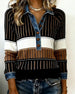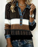 Button-Down Collar Color-Block Versatile Sweatshirt