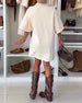 SPECIFICATIONS Style: Casual Material: Cotton Blends,Lace Dress Type: A-Line Dress Length: Above-knee Pattern Type: Solid Color Sleeve Type: Regular sleeve Sleeve Length: Short Sleeve Details: Patchwork Fit Type: Regular Season: Fall,Winter Occasion: Daily Package Includes: 1 x Dress SIZE TABLE Size Bust Length CM INCH CM INCH S...