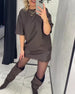 Button-Down Design Raglan Sleeve Solid Color Dress