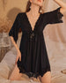SPECIFICATIONS Style: Sexy Material: Cotton Blends,Lace Dress Type: A-Line Dress Length: Above-knee Neckline: V neck_V Pattern Type: Solid Color Sleeve Type: Regular sleeve Sleeve Length: Half Sleeve Details: Lace Fit Type: Regular Season: Spring,Summer,Fall,Winter Occasion: Daily Package Includes: 1 x Dress SIZE TABLE Size Bust Lengt...