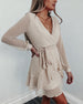 SPECIFICATIONS Style: Casual Material: Cotton Blends Dress Type: A-Line Dress Length: Above-knee Neckline: V neck_V Pattern Type: Solid Color Sleeve Type: Lantern Sleeve Sleeve Length: Long Sleeve Details: Lace Up Fit Type: Regular Season: Spring,Fall,Winter Occasion: Daily Package Includes: 1 x Dress (With Belt) SIZE TABLE Size Bust ...