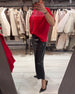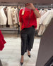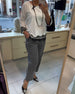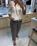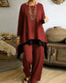 Irregular Long-Sleeved Top And Straight-Leg Pants Set