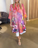 Lapel Vintage Print Short-Sleeved Dress