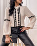 Elegant Lace Patchwork Balloon Sleeve Blouse